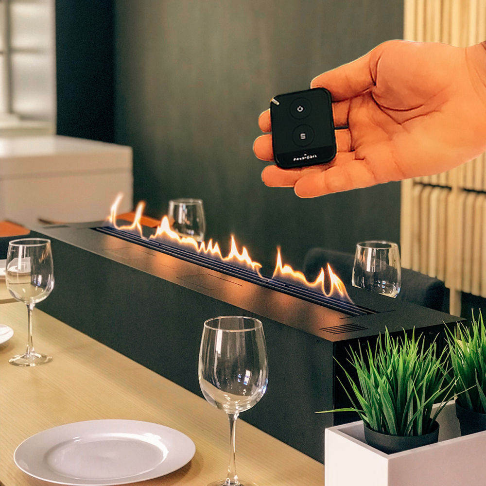 Зажечь огонь можно одной кнопкой на пульте д/у (нажал на кнопку - зажегся огонь, нажал еще раз - огонь потух).