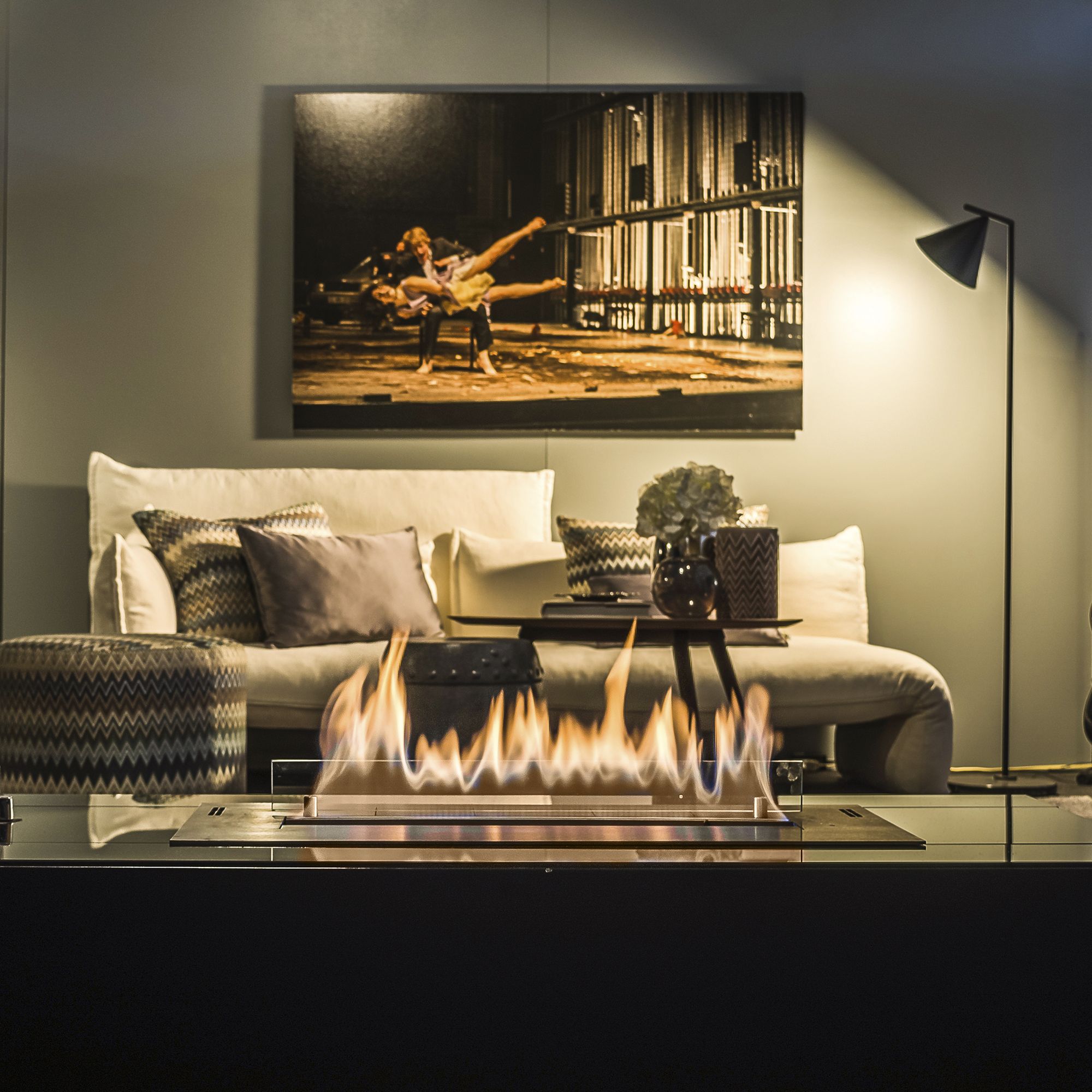 - Индикация уровня топлива и высоты пламени, отображаемая на дисплее управления биокамином или на смартфоне.